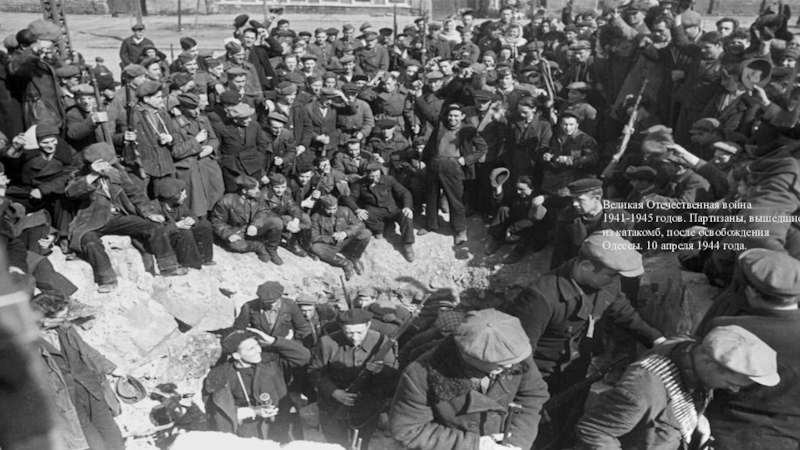 Слайд 23Великая Отечественная война 1941-1945 годов. Партизаны, вышедшие из катакомб, после освобождения