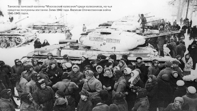 Слайд 5Танкисты танковой колонны "Московский колхозник"среди колхозников, на чьи средства построены эти