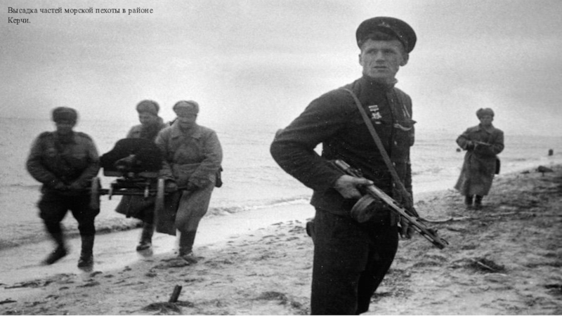 Слайд 32Высадка частей морской пехоты в районе Керчи.