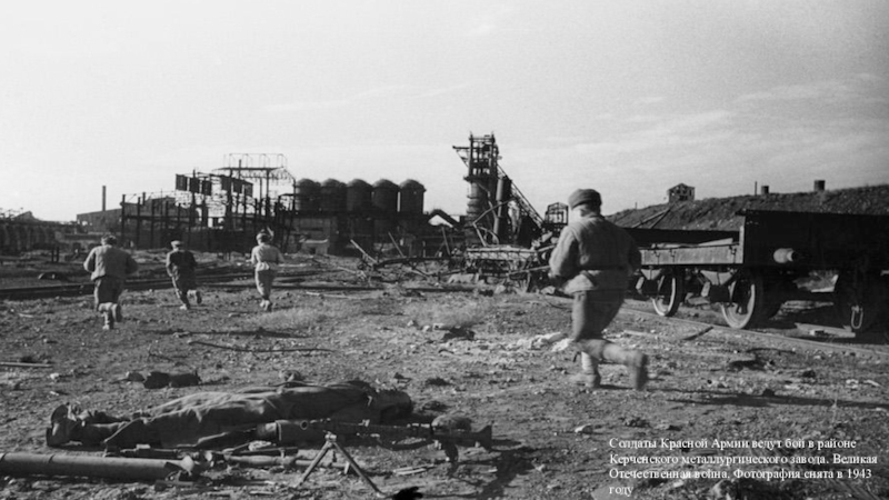 Слайд 34Солдаты Красной Армии ведут бой в районе Керченского металлургического завода. Великая