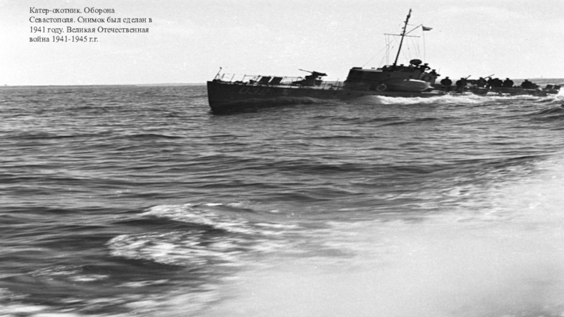Слайд 30Катер-охотник. Оборона Севастополя. Снимок был сделан в 1941 году. Великая Отечественная