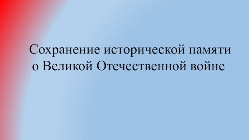 Слайд 3Сохранение исторической памяти о Великой Отечественной войне