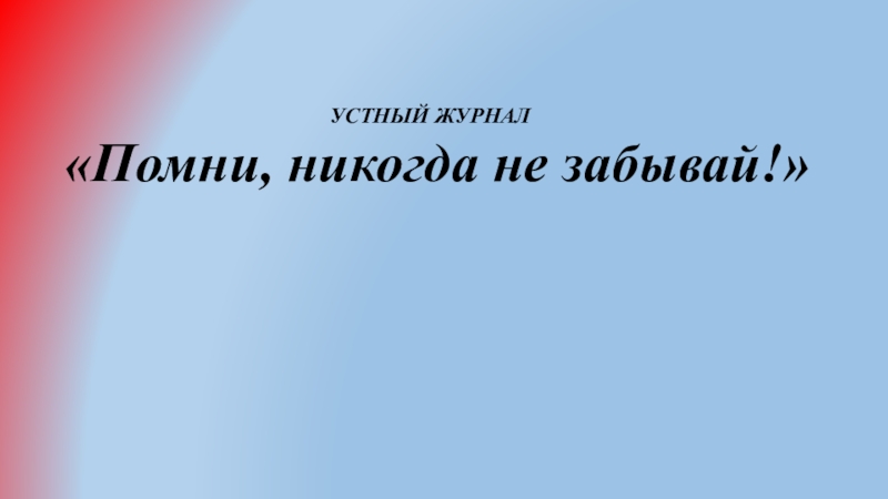УСТНЫЙ ЖУРНАЛ«Помни, никогда не забывай!»