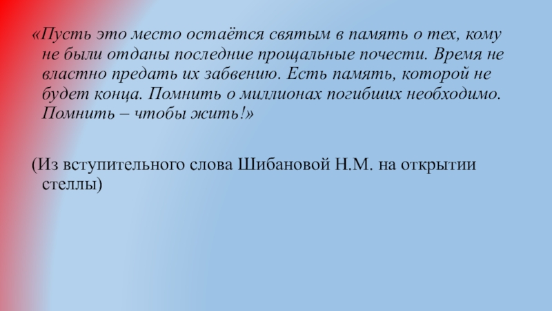 Слайд 14«Пусть это место остаётся святым в память о тех, кому не