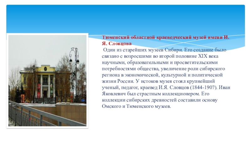 Слайд 13Тюменский областной краеведческий музей имени И.Я. Словцова