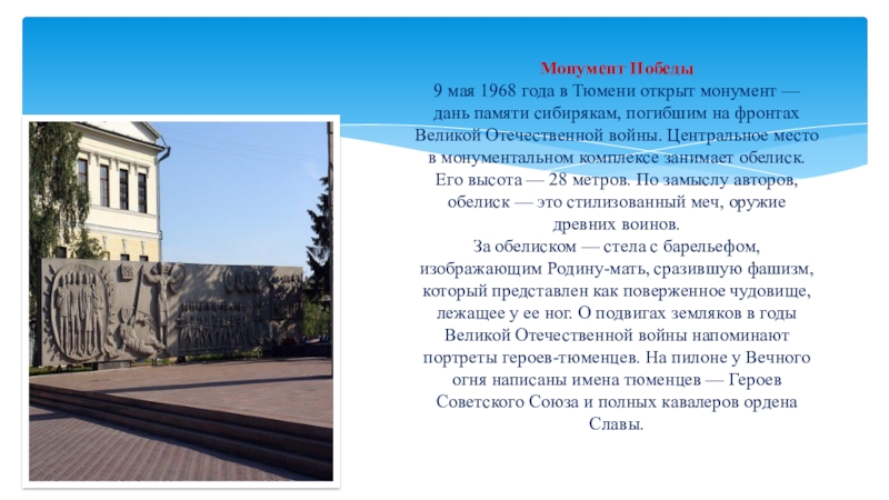 9 мая 1968 года в Тюмени открыт монумент — дань