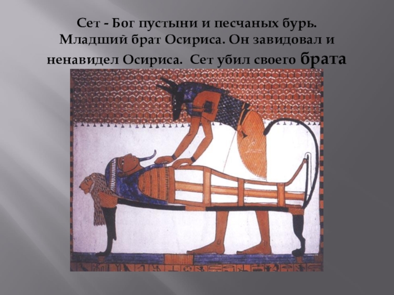 Слайд 11Сет - Бог пустыни и песчаных бурь. Младший брат Осириса. Он