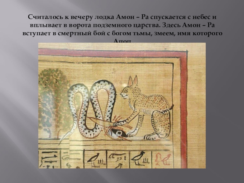 Слайд 4Считалось к вечеру лодка Амон – Ра спускается с небес и