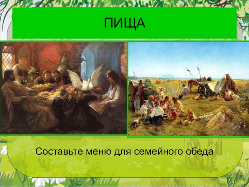 Мясо, рыба, пироги, хмельной мёд, морсы, кисели