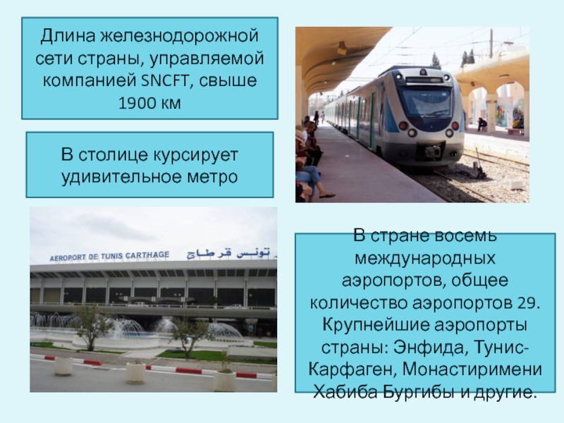 Длина железнодорожной сети страны, управляемой компанией SNCFT, свыше 1900 км