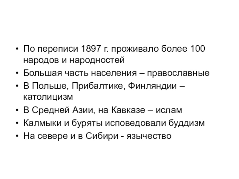 По переписи 1897 г. проживало более 100 народов и народностей