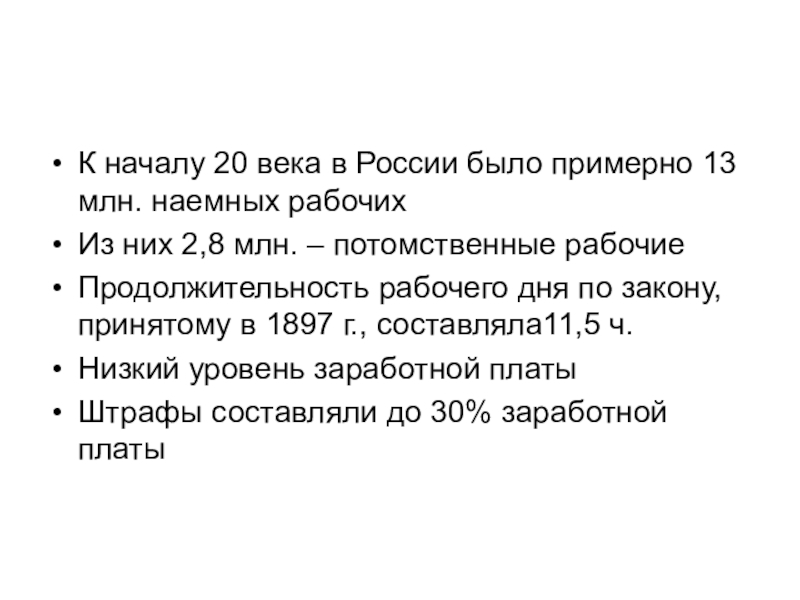 К началу 20 века в России было примерно 13 млн. наемных