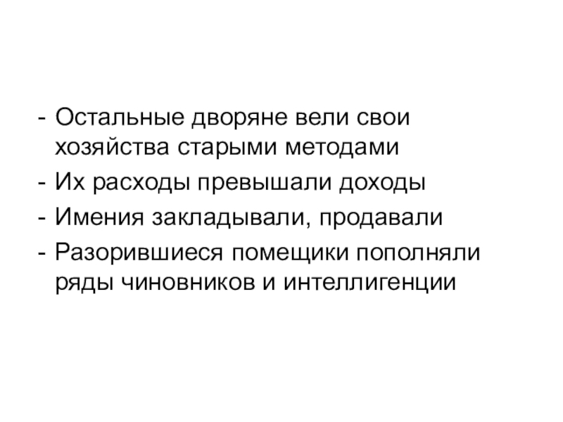 Остальные дворяне вели свои хозяйства старыми методами