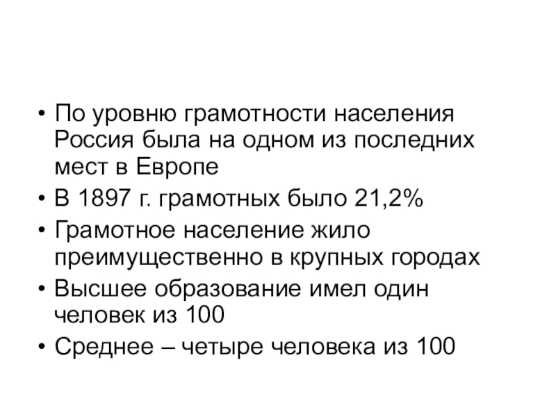 По уровню грамотности населения Россия была на одном из последних мест