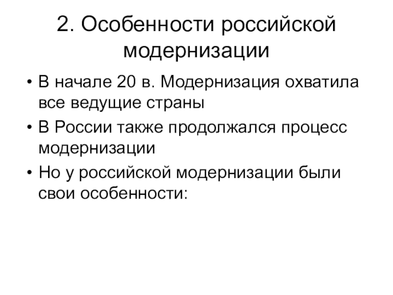 Но у российской модернизации были свои особенности: