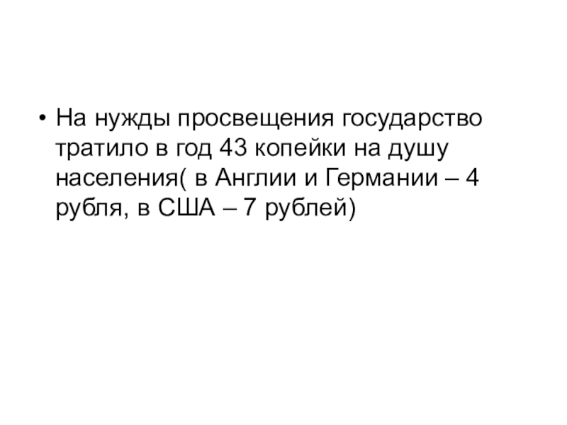 На нужды просвещения государство тратило в год 43 копейки на душу