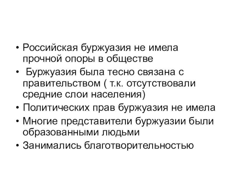 Российская буржуазия не имела прочной опоры в обществе