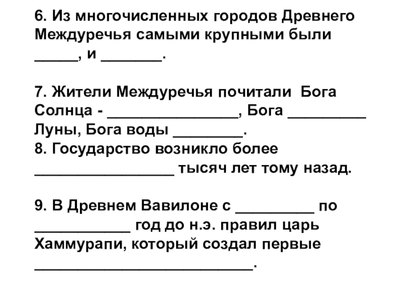 5.Бог Солнца Месопотамии был_____.