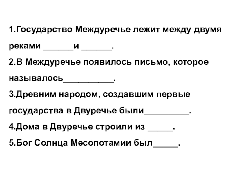 3.Древним народом, создавшим первые государства в Двуречье были_________.