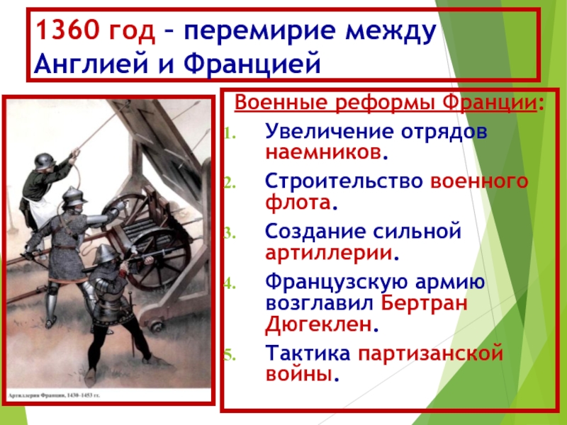 Король Франции создал постоянную наемную армию, увеличил артиллерию.
