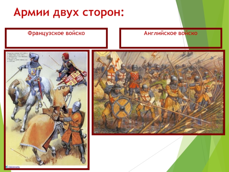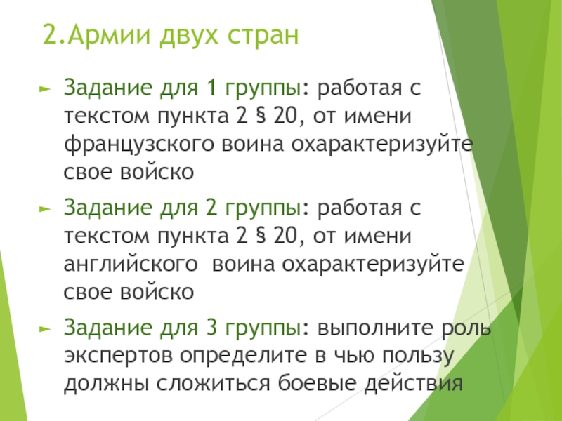 Задание для 2 группы: работая с текстом пункта 2 § 20, от имени английского воина охарактеризуйте свое войско