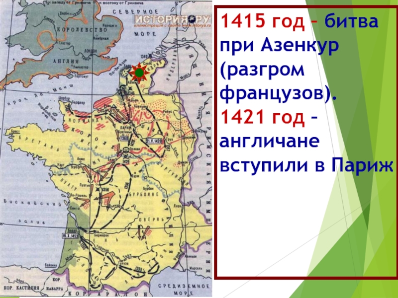 Слайд 161415 год – битва при Азенкур (разгром французов).