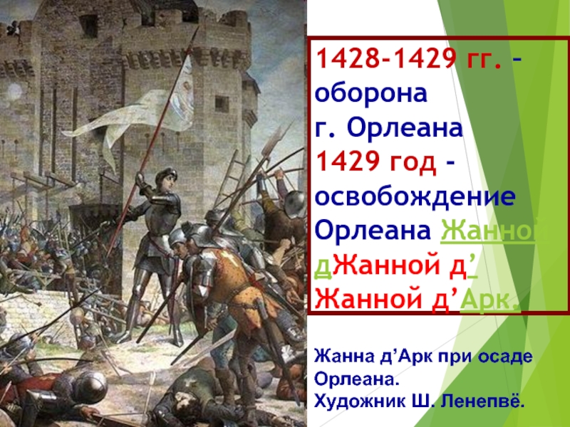 10 слайд - Жанна д’Арк при осаде Орлеана. Художник Ш. Ленепвё. - http://www.stoletie.ru/upload/iblock/17a/8.jpg?rand=344922441