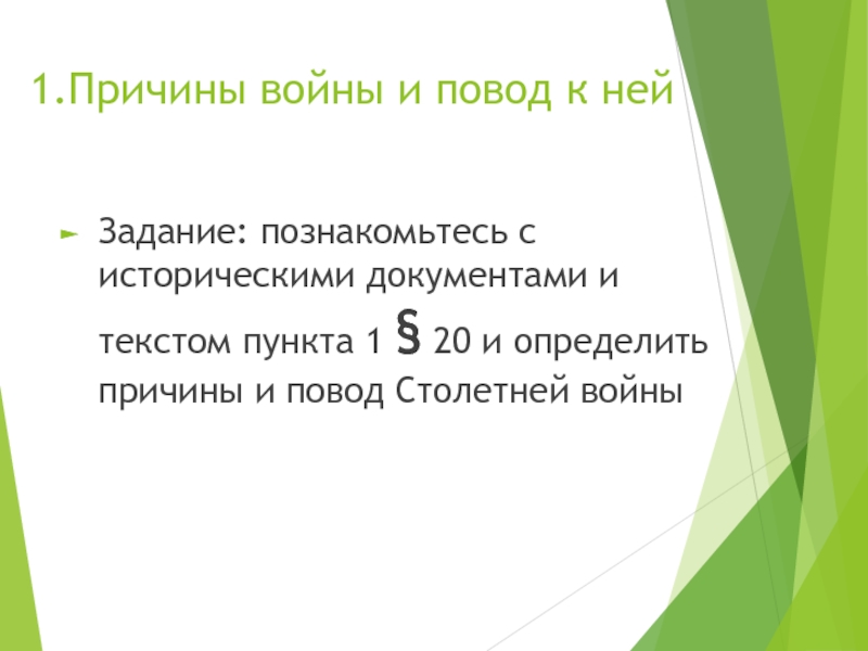 текстом пункта 1 § 20 и определить причины и повод Столетней войны