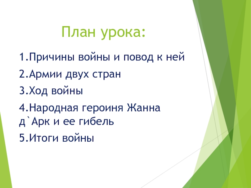наступившей с ее появлением во французском войске , современники считали чудом: французы приписывали победы вмешательству Бога , англичане – пособничеству дьявола. В чем состоял истинный смысл этого чуда, определим на нашем уроке