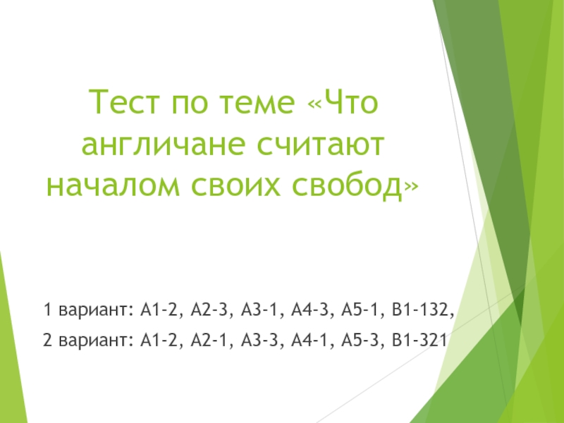 Слайд 4Тест по теме «Что англичане считают началом своих свобод»