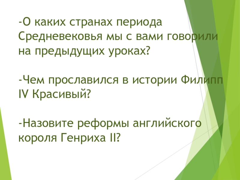 Слайд 3-О каких странах периода Средневековья мы с вами говорили на предыдущих
