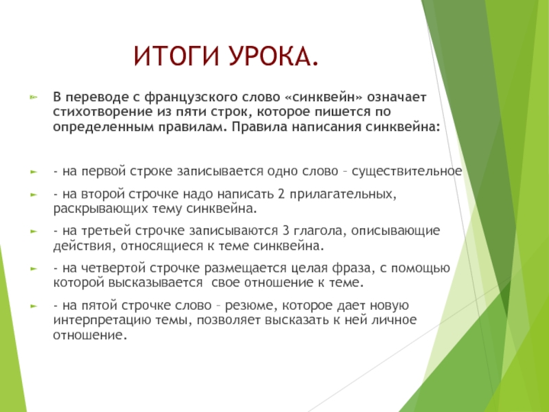 В переводе с французского слово «синквейн» означает стихотворение из пяти