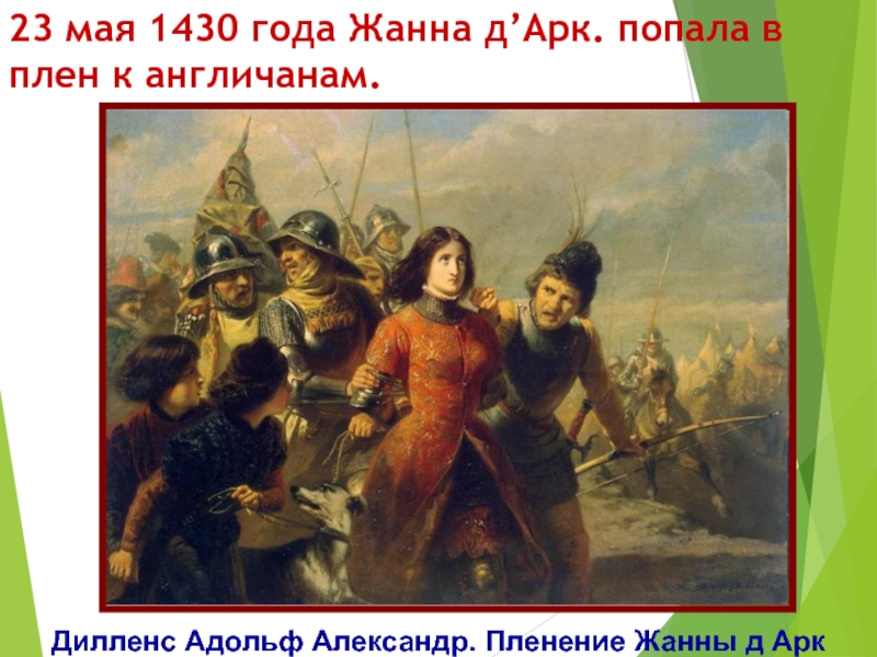 12 слайд - Дилленс Адольф Александр. Пленение Жанны д Арк - http://i060.radikal.ru/1008/fa/1e17a8ae8515t.jpg