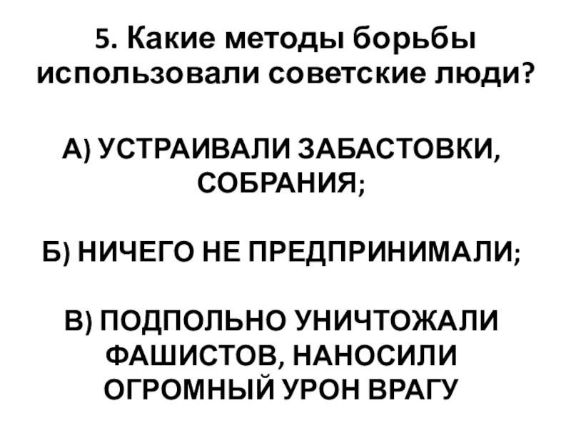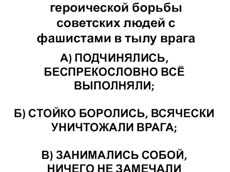 4. Приведите примеры героической борьбы советских людей с фашистами в тылу врага