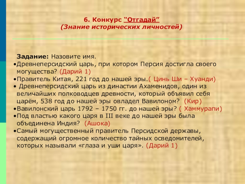 Самый могущественный правитель Персидской державы, содержащий огромное количество тайных осведомителей, которых называли «глаза и уши царя». (Дарий 1)