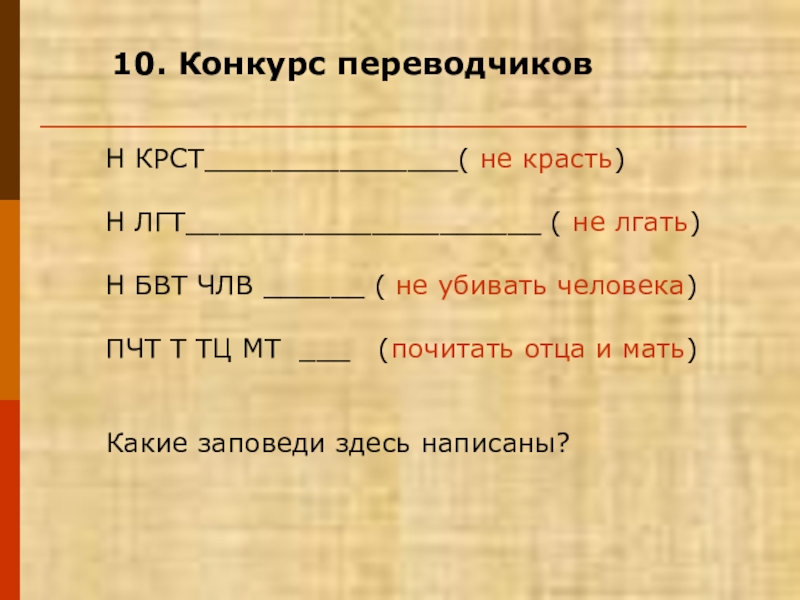 ПЧТ Т ТЦ МТ ___ (почитать отца и мать)