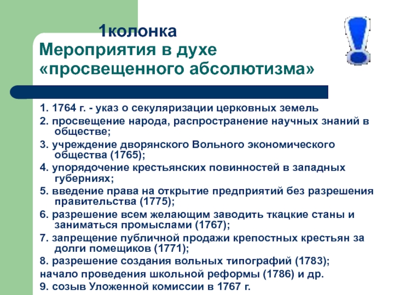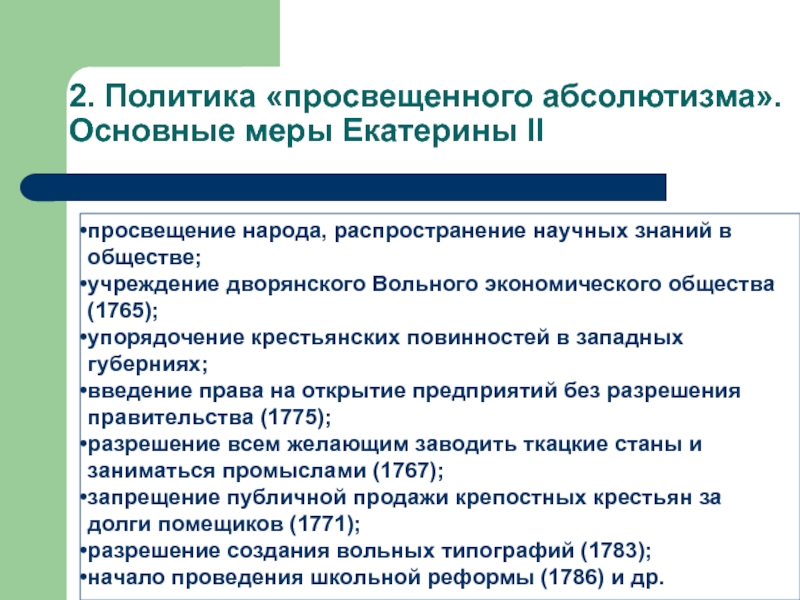 2. Политика «просвещенного абсолютизма». Основные меры Екатерины II