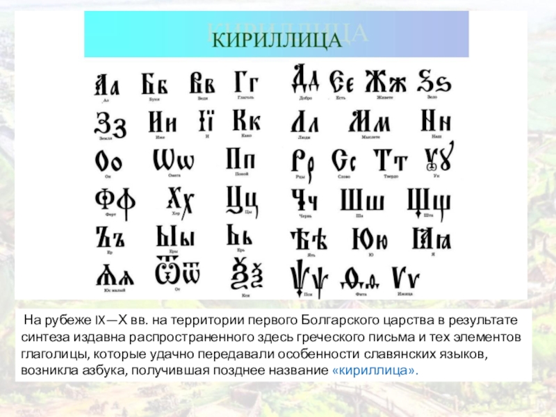 глаголицы, которые удачно передавали особенности славянских языков, возникла азбука, получившая позднее название «кириллица».