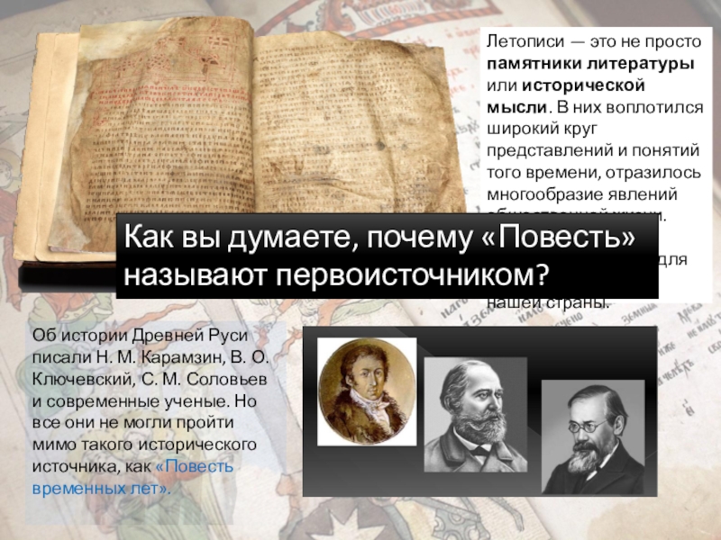 Слайд 27Летописи — это не просто памятники литературы или исторической мысли. В