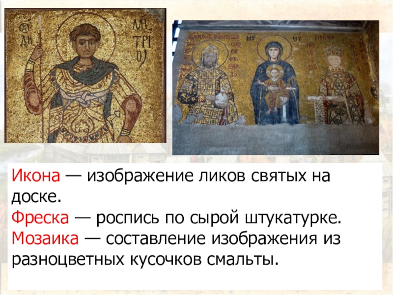 книги, иконы, храмы создавались византийскими мастерами и перенимавшими их мастерство русскими учениками.