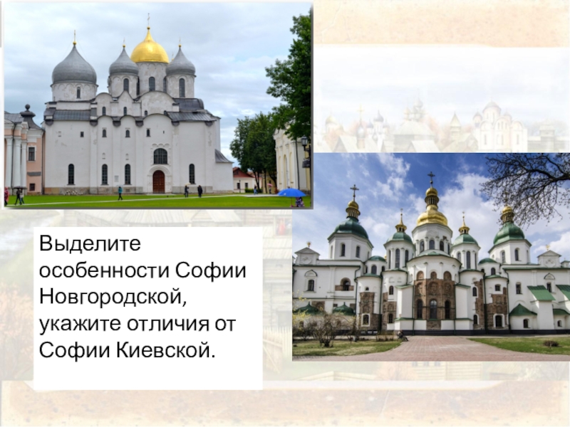 Слайд 37Выделите особенности Софии Новгородской, укажите отличия от Софии Киевской.