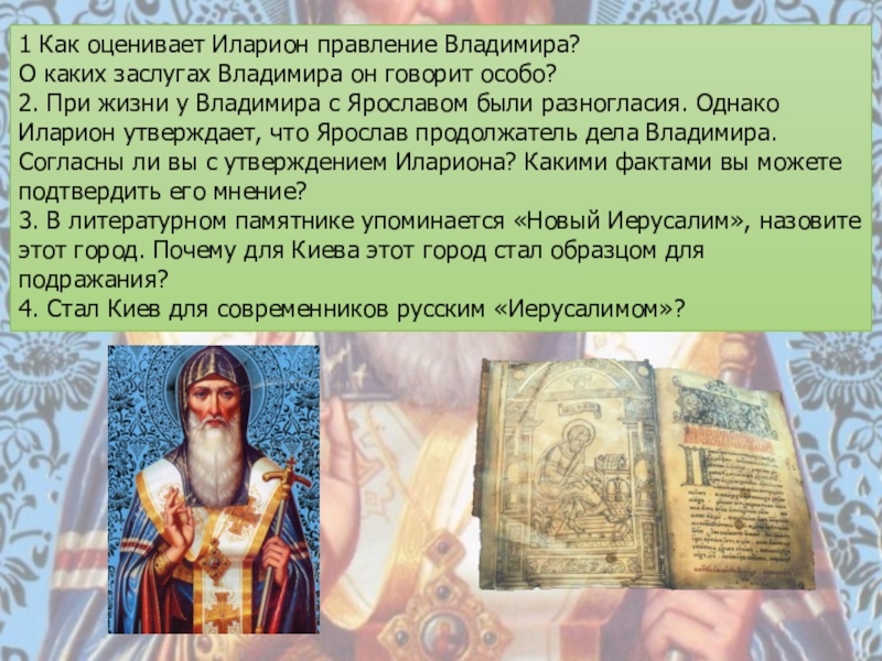 Слайд 321 Как оценивает Иларион правление Владимира?
