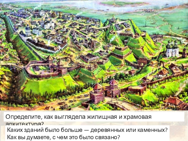 Слайд 33Определите, как выглядела жилищная и храмовая архитектура?
