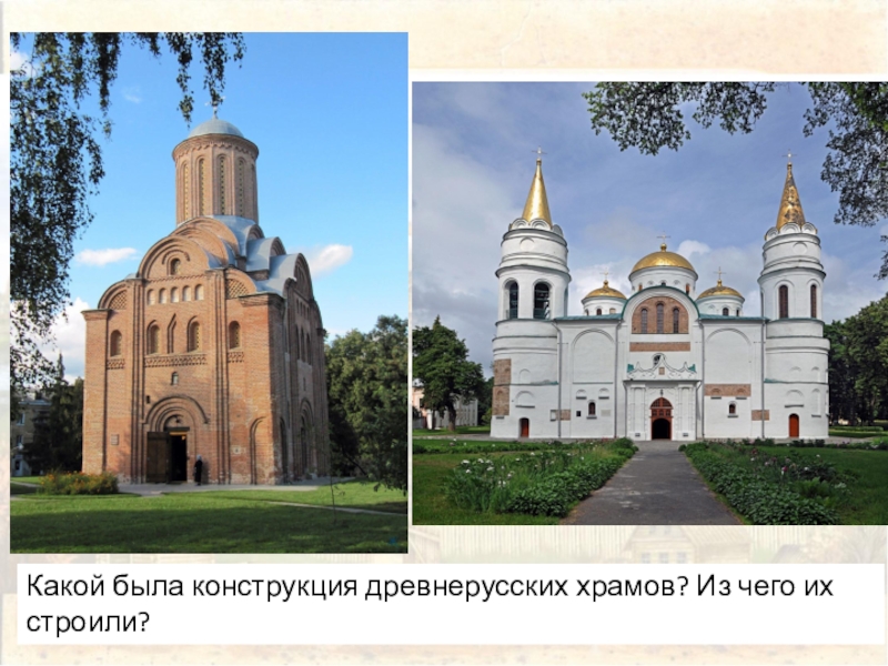 Слайд 34Какой была конструкция древнерусских храмов? Из чего их строили?