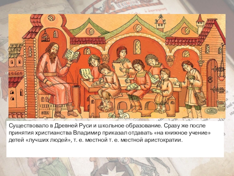 Слайд 23Существовало в Древней Руси и школьное образование. Сразу же после принятия