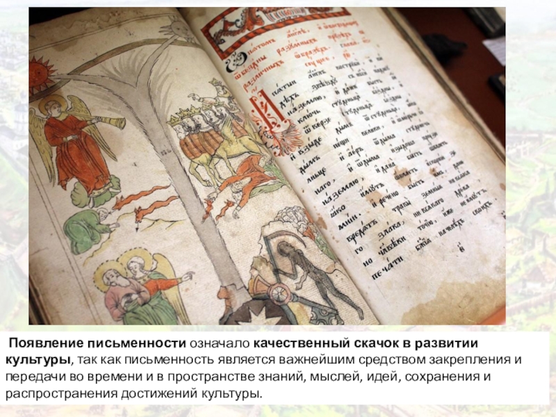 Слайд 14 Появление письменности означало качественный скачок в развитии культуры, так как