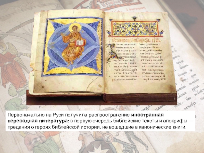 Слайд 25Первоначально на Руси получила распространение иностранная переводная литература: в первую очередь
