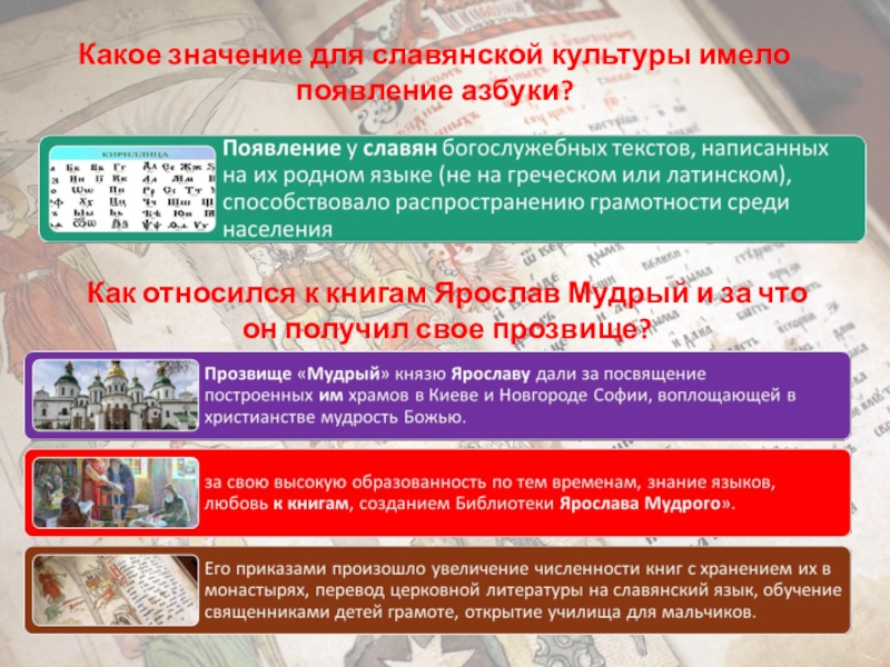 Слайд 18Какое значение для славянской культуры имело появление азбуки?