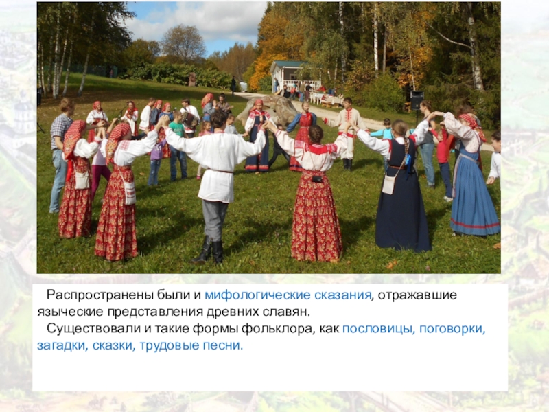 Слайд 7 Распространены были и мифологические сказания, отражавшие языческие представления древних