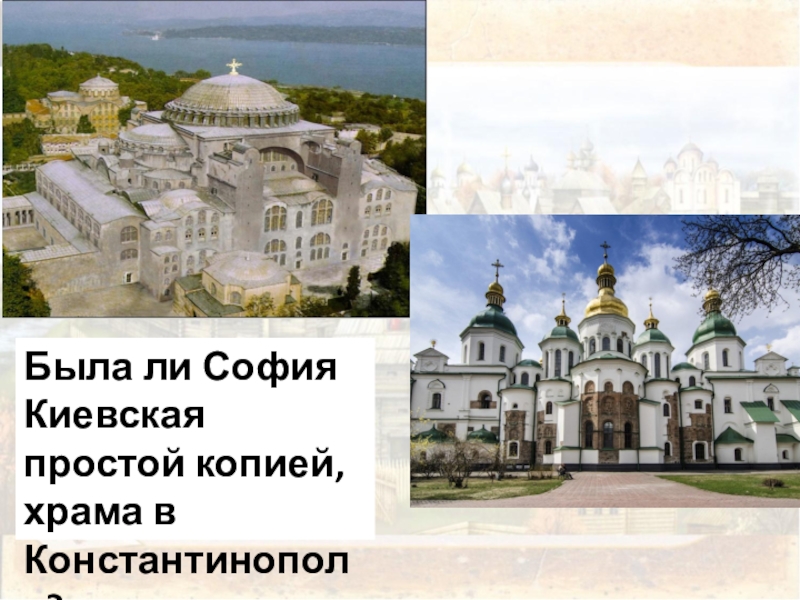 Слайд 36Была ли София Киевская простой копией, храма в Константинополе?